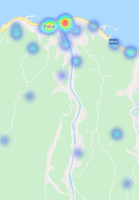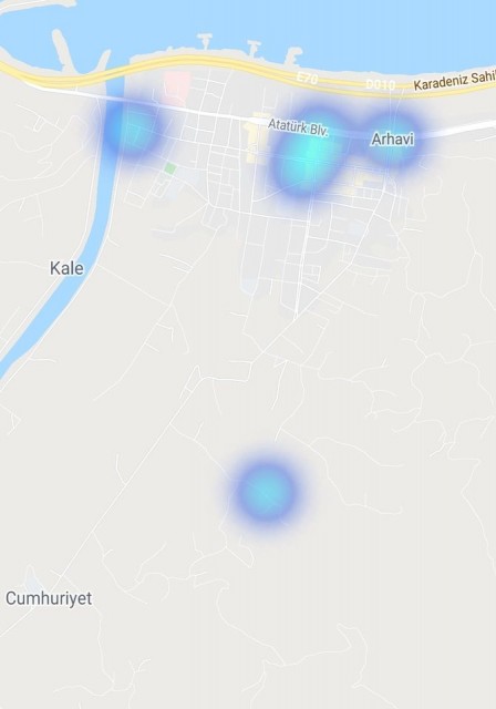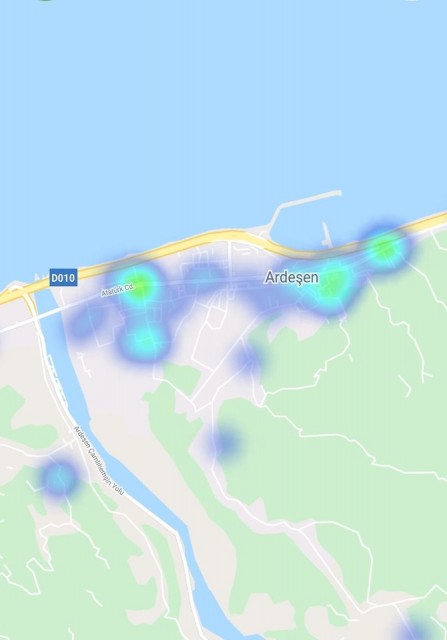 Rize Pazar, Ardeşen, Çamlıhemşin ve Fındıklı ilçeleri, Artvin Arhavi, Hopa ve Kemalpaşa ilçelerinde korona haritası