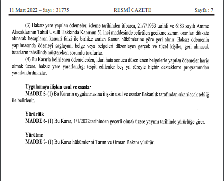 Ödemelerden haksız yere yararlandığı tespit edilenler 5 yıl süreyle hiçbir destekleme programından yararlandırılmayacak.