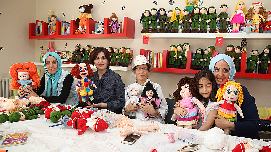 Temel, doktor, öğretmen, avukat ve futbolcu kıyafetli bebekler üreterek farklı meslek gruplarına da hitap ettiklerini kaydetti. - "Kendi paramı kazanmak güzel bir şey" Üç çocuk annesi ev hanımı Semra Korkmaz ise hem meslek öğrendiklerini hem de ürettikleri bebekleri satarak para kazandıklarını belirterek, "İyi ki kursa gelmişim. Hocamız bize öğretti ve bir ay içerisinde siparişlerine bizi de kattı. Biz de yoğun şekilde üretmeye başladık. Çok sabır isteyen bir iş ama çok eğlenceli. Rahatlatıcı bir şey." diye konuştu. Hamdiye Çakır da kursa arkadaşının önerisi üzerine katıldığını, ortam güzel olduğu için devam ettiğini anlatarak, "Örgü bebekler yapıyoruz. Bir şeyler yaptığımız, başardığımız zaman çok hoşumuza gidiyor. İlk yaptığım ayıcığı satmayacağım. Onu evimin en güzel köşesinde saklayacağım. Bundan sonra yaptıklarımı satabilirim. Kendi paramı kazanmak güzel bir şey." dedi. Kursa 2 aylık bebeğiyle katılan Neslihan Tecimer, bir aydır buraya devam ettiğini kaydederek, "Hem meslek öğreniyoruz hem de aile bütçemize katkıda bulunuyoruz. Mutfak masrafımızı karşılıyoruz. Çok hoşumuza gidiyor. Bu el emeklerimiz beğeniliyor, talep görüyor ve satılıyor. Çok hoşumuza gidiyor." ifadesini kullandı.
